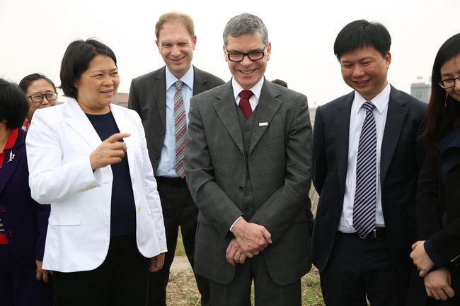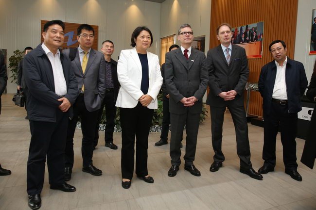 2015年3月3日,德國埃斯林根應(yīng)用科技大學(xué)副校長查耐爾斯基和博克曼一行蒞揭考察中德金屬生態(tài)城及中德雙元應(yīng)用科技大學(xué)選址,共同商討推進(jìn)合作辦學(xué)事宜。市委書記、市人大常委會主任嚴(yán)植嬋等陪同活動(dòng)。